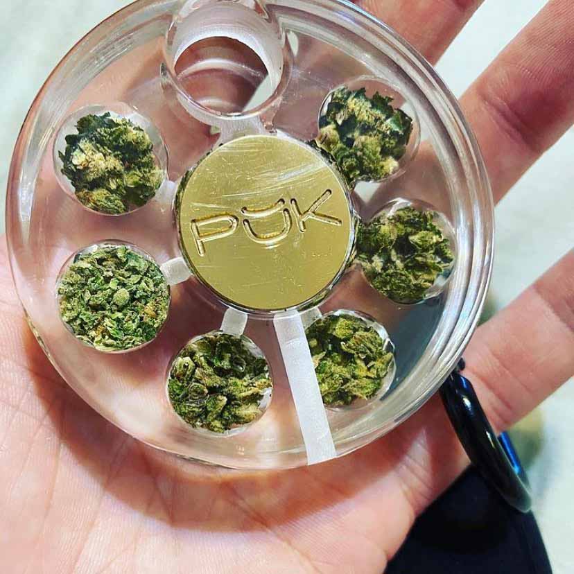 PŬKs hold nearly ⅛ of an ounce in their 6 full-size bowls, allowing you to customize your experience by filling each bowl with a different strain of cannabis. Having 6 bowls also means that most people will never have to carry a separate container or spend time scraping out the bowls and refilling them multiple times throughout the day. Just load all 6 bowls at once and with the turn of your PŬK, you will have a fresh new bowl ready to enjoy.